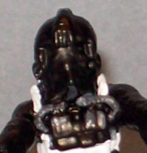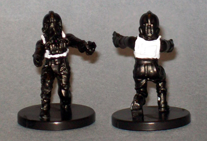 Next, paint the chest armor using a small brush and white paint. Start by covering the upper back torso, leaving an 1/8 of an inch gap between the bottom of the armor your are now painting and the belt on the waist of the miniature. Continue painting a small section over the shoulders where the hoses come around from the back. Be sure to paint just the section of hose that is on the shoulder and not the entire hose. Continue using white on the front, under the arms and the chest area but not the life support element. If you accidently paint part of the life support or any other part of the fig, let the paint dry and just retouch the area with black paint.