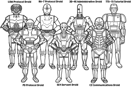 When we revamped the rules for droids for the Star Wars Roleplaying Game Saga Edition, one of our primary goals was to make it easier to play heroic droid characters. Just as C-3PO and R2-D2 are present throughout the Star Wars saga, players should have the option of bringing their own interesting droids into the campaign's story.