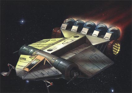 The cargo pods are specially designed by Suwantek to hold more than the typical cargo pod bought and sold throughout the galaxy. The TL-1800 cargo pods can hold up to 100 tons of cargo and are modular to the extent that they can be linked to one another for easy attachment to the ship. A single TL-1800 can safely hold up to 4 of these cargo pods in space, but atmospheric resistance against the ship forces ship owners to detach all but one pod to safely navigate while flying in a planet's atmosphere. Anyone piloting a TL-1800 within an atmosphere receives a -5 penalty to any of his Pilot checks for every cargo pod attached to the ship beyond the first.